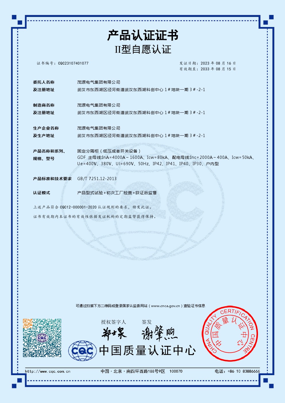 公司成立以来,质量管理为纲,按ISO9001/2008标准,规范科学管理制度,提升员工素质,强化企业管理基础,公司主要生产YBM(P),ZBM系列预装式箱式变电站,KYN28.HXGN系列高压开关柜,GGD.GCS.MNS.XL等系列低压开关柜,经营产品有S13.S20.SC(B)12.SC(B)14干式及油浸式变压器等系列产品,深受全国广大电力用户的好评。设备产品执行了IEC60298和IEC604391国标标准,产品取得了“CQC”强制性产品认证,并于2022年取得国家高新技术企业称号。
